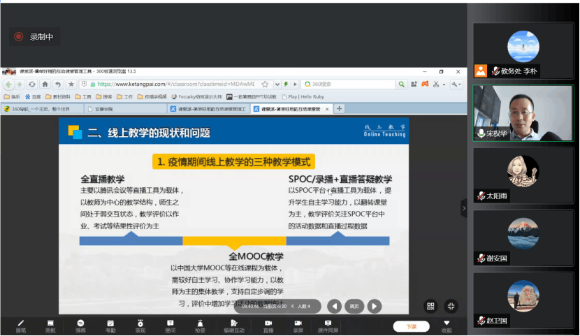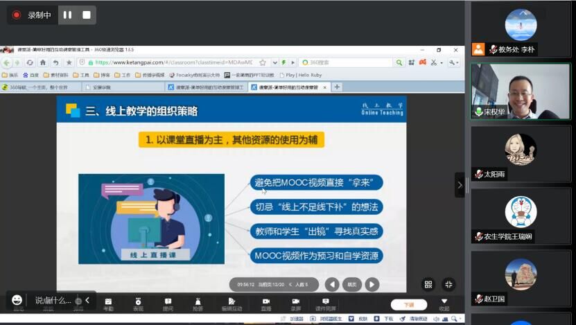 培訓會邀請我校電子與信息工程學院宋權華副教授做《線上教學的工具、策略與組織方法》專題講座,分别從線上教學的背景、現狀和問題、線上教學的組織策略以及如何開展基于“資源+直播+互動”的線上教學等方面進行分享與互動交流。參訓教師紛紛表示,本次培訓内容充實且實用性強,對有效開展線上教學起到了積極的促進作用。